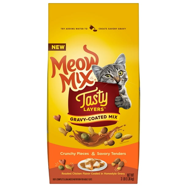 Meow Mix Tasty Layers Dry Cat Food Roasted Chicken Flavor Coated In Homestyle Gravy 3 Lb Bag Walmart Com