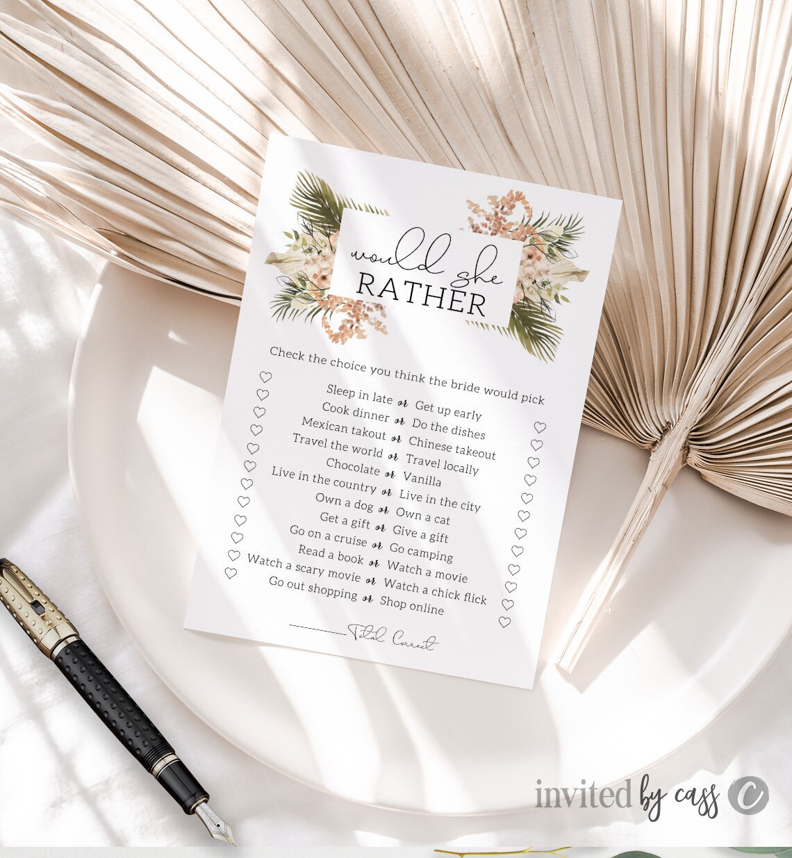 Would She Rather Baby Shower Game Desert Baby Shower Gender Etsy